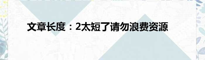 大家好,今天小六子来为大家解答以下的问题,关于文章长度:2太短了请勿浪费资源这个很多人还不知道,现在让我们一起来看看吧!