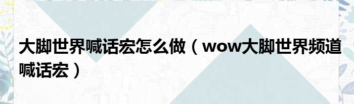 导读 大家好,今天小六子来为大家解答以下的问题,关于大脚世界喊话宏怎么做,wow大脚世界频道喊话宏这个很多人还不知道,现在让我们一起来看看吧