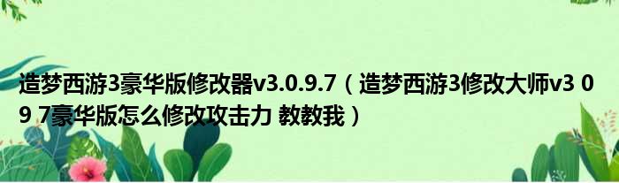 造梦西游3豪华版修改器v3.0.9.7(造梦西游3修改大师v3 0 9 7豪华版怎么修改攻击力 教教我)