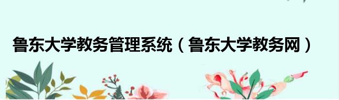 鲁东大学教务管理系统(鲁东大学教务网)