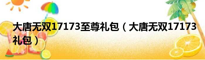 大唐无双17173至尊礼包(大唐无双17173礼包)
