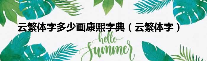 导读 大家好,今天小六子来为大家解答以下的问题,关于云繁体字多少画康熙字典,云繁体字这个很多人还不知道,现在让我们一起来看看吧!1、在表示