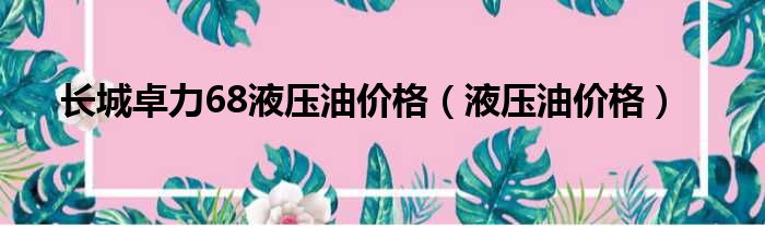 导读 大家好,今天小六子来为大家解答以下的问题,关于长城卓力68液压油价格,液压油价格这个很多人还不知道,现在让我们一起来看看吧!1、液压油