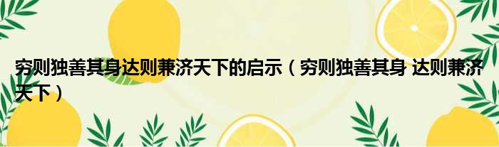 穷则独善其身达则兼济天下的启示(穷则独善其身 达则兼济天下)