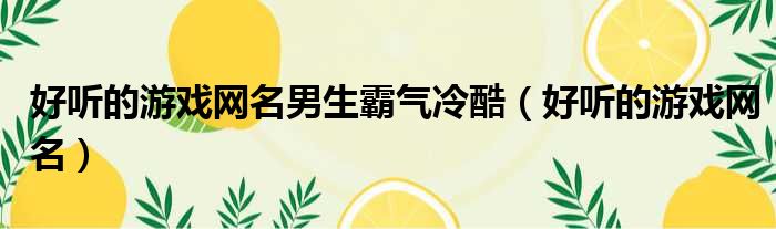 好听的游戏网名男生霸气冷酷(好听的游戏网名)