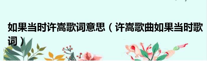 如果当时许嵩歌词意思(许嵩歌曲如果当时歌词)
