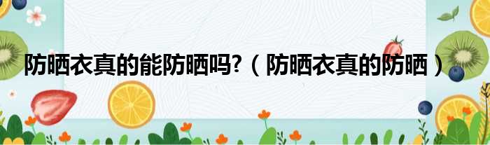 防晒衣真的能防晒吗?(防晒衣真的防晒)