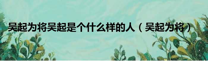 导读 大家好,今天小六子来为大家解答以下的问题,关于吴起为将吴起是个什么样的人,吴起为将这个很多人还不知道,现在让我们一起来看看吧!1、一