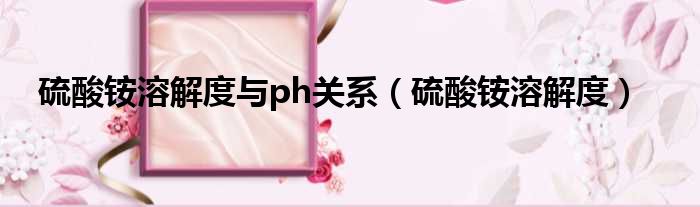 硫酸铵溶解度与ph关系(硫酸铵溶解度)