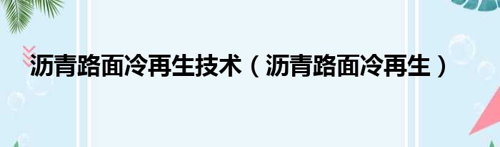 沥青路面冷再生技术(沥青路面冷再生)