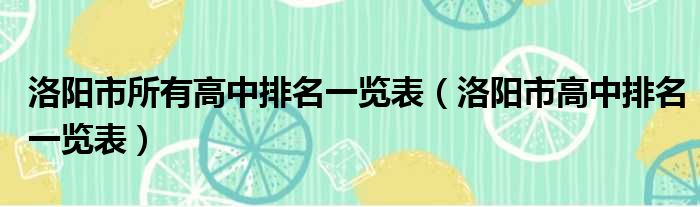 洛阳市所有高中排名一览表(洛阳市高中排名一览表)