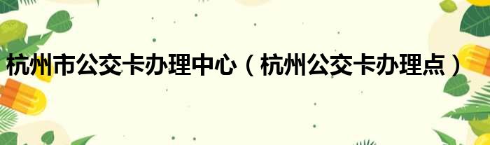 杭州市公交卡办理中心(杭州公交卡办理点)