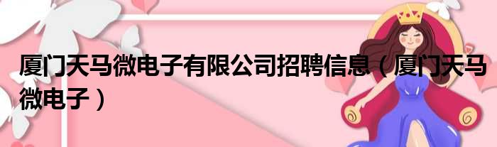 厦门天马微电子有限公司招聘信息(厦门天马微电子)