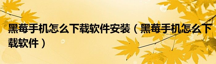 黑莓手机怎么下载软件安装(黑莓手机怎么下载软件)