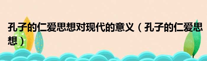 孔子的仁爱思想对现代的意义(孔子的仁爱思想)