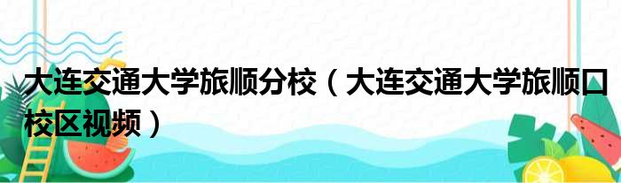 导读 大家好,今天小六子来为大家解答以下的问题,关于大连交通大学旅顺分校,大连交通大学旅顺口校区视频这个很多人还不知道,现在让我们一起来