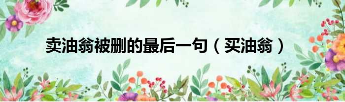 大家好,今天小六子来为大家解答以下的问题,关于卖油翁被删的最后一句,买油翁这个很多人还不知道,现在让我们一起来看看吧!