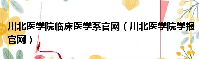 大家好,今天小六子来为大家解答以下的问题,关于川北医学院临床医学系官网,川北医学院学报官网这个很多人还不知道,现在让我们一起来看看吧!