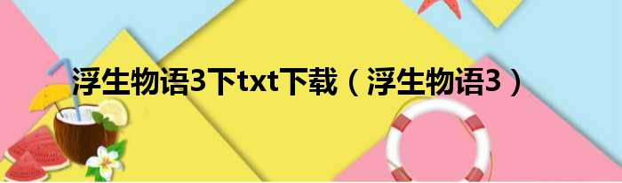 导读 大家好,今天小六子来为大家解答以下的问题,关于浮生物语3下txt下载,浮生物语3这个很多人还不知道,现在让我们一起来看看吧!1、连载差不