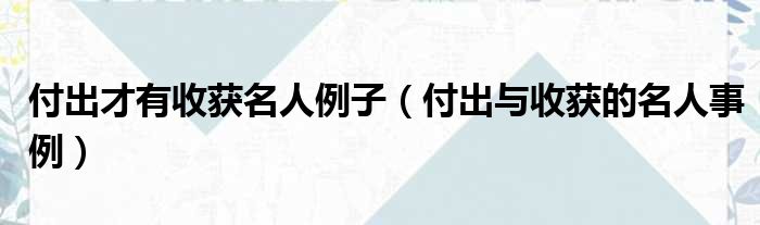 导读 大家好,今天小六子来为大家解答以下的问题,关于付出才有收获名人例子,付出与收获的名人事例这个很多人还不知道,现在让我们一起来看看吧