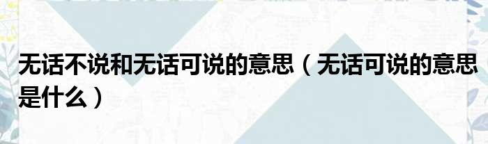 无话不说和无话可说的意思(无话可说的意思是什么)