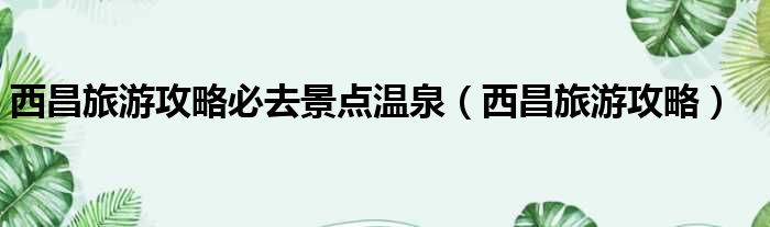 导读 大家好,今天小六子来为大家解答以下的问题,关于西昌旅游攻略必去景点温泉,西昌旅游攻略这个很多人还不知道,现在让我们一起来看看吧!1、