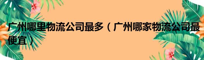 广州哪里物流公司最多(广州哪家物流公司最便宜)