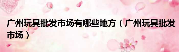 广州玩具批发市场有哪些地方(广州玩具批发市场)