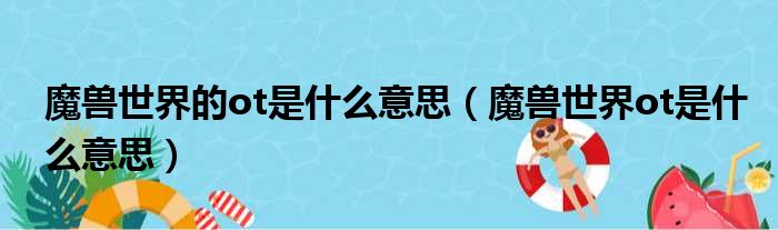 导读 大家好,今天小六子来为大家解答以下的问题,关于魔兽世界的ot是什么意思,魔兽世界ot是什么意思这个很多人还不知道,现在让我们一起来看看