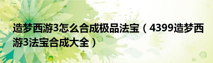 导读 大家好,今天小六子来为大家解答以下的问题,关于造梦西游3怎么合成极品法宝,4399造梦西游3法宝合成大全这个很多人还不知道,现在让我们一