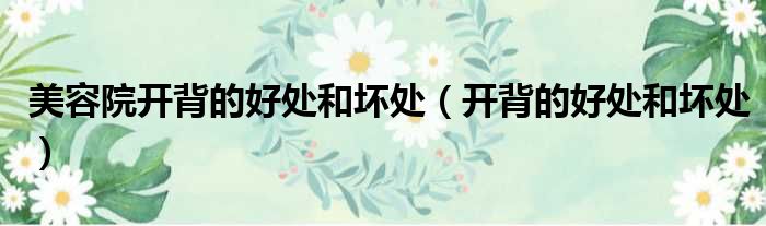 导读 大家好,今天小六子来为大家解答以下的问题,关于美容院开背的好处和坏处,开背的好处和坏处这个很多人还不知道,现在让我们一起来看看吧!1
