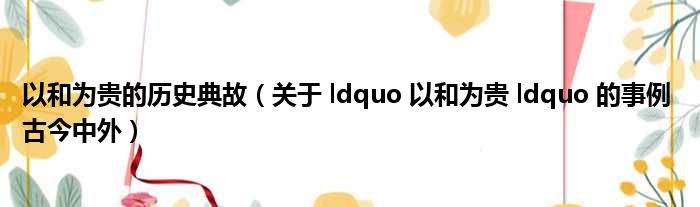 以和为贵的历史典故(关于 ldquo 以和为贵 ldquo 的事例 古今中外)