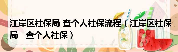 江岸区社保局 查个人社保流程(江岸区社保局 查个人社保)