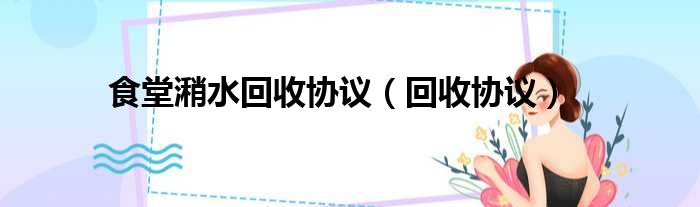 大家好,今天小六子来为大家解答以下的问题,关于食堂潲水回收协议,回收协议这个很多人还不知道,现在让我们一起来看看吧!