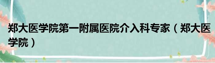 导读 大家好,今天小六子来为大家解答以下的问题,关于郑大医学院第一附属医院介入科专家,郑大医学院这个很多人还不知道,现在让我们一起来看看