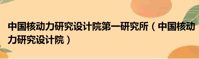 导读 大家好,今天小六子来为大家解答以下的问题,关于中国核动力研究设计院第一研究所,中国核动力研究设计院这个很多人还不知道,现在让我们一