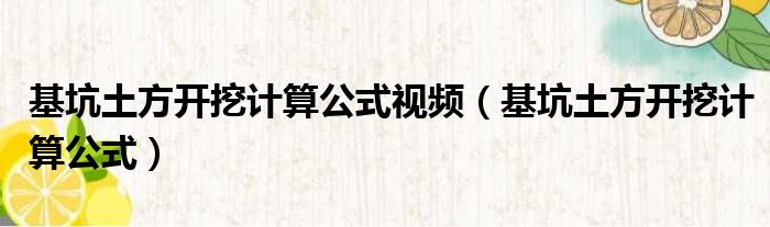 基坑土方开挖计算公式视频(基坑土方开挖计算公式)