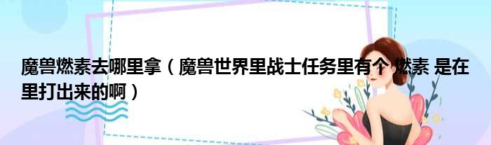 魔兽燃素去哪里拿(魔兽世界里战士任务里有个 燃素 是在里打出来的啊)