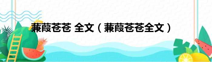 蒹葭苍苍 全文(蒹葭苍苍全文)
