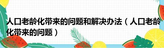 人口老龄化带来的问题和解决办法(人口老龄化带来的问题)