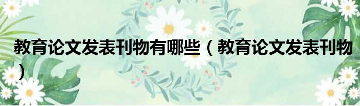 教育论文发表刊物有哪些(教育论文发表刊物)