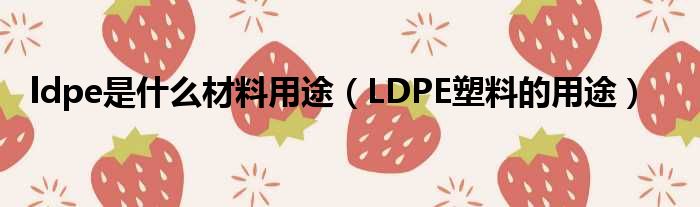 导读 大家好,今天小六子来为大家解答以下的问题,关于ldpe是什么材料用途,LDPE塑料的用途这个很多人还不知道,现在让我们一起来看看吧!1、LDPE