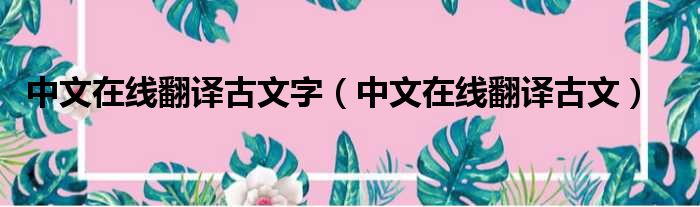大家好,今天小六子来为大家解答以下的问题,关于中文在线翻译古文字,中文在线翻译古文这个很多人还不知道,现在让我们一起来看看吧!