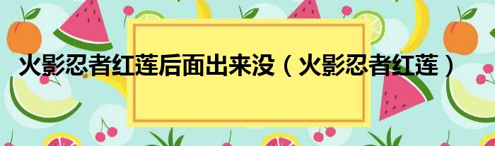 大家好,今天小六子来为大家解答以下的问题,关于火影忍者红莲后面出来没,火影忍者红莲这个很多人还不知道,现在让我们一起来看看吧!