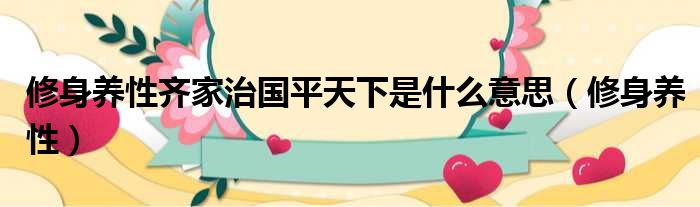 大家好,今天小六子来为大家解答以下的问题,关于修身养性齐家治国平天下是什么意思,修身养性这个很多人还不知道,现在让我们一起来看看吧!