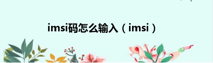 imsi码怎么输入(imsi)