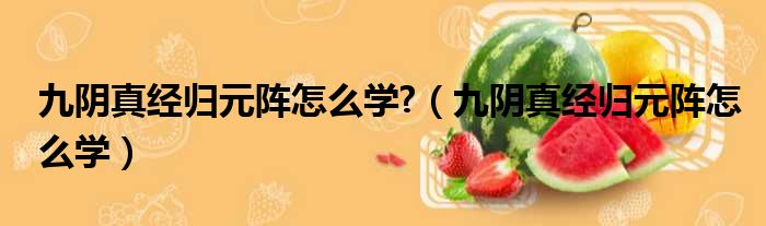 九阴真经归元阵怎么学?(九阴真经归元阵怎么学)