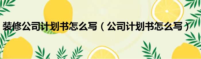 导读 大家好,今天小六子来为大家解答以下的问题,关于装修公司计划书怎么写,公司计划书怎么写这个很多人还不知道,现在让我们一起来看看吧!1、