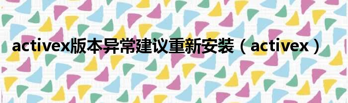 大家好,今天小六子来为大家解答以下的问题,关于activex版本异常建议重新安装,activex这个很多人还不知道,现在让我们一起来看看吧!