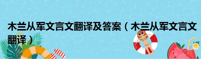 木兰从军文言文翻译及答案(木兰从军文言文翻译)